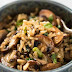 One for mushroom lovers! Brown the mushrooms well so the base of the pot turns brown, then deglaze it with broth so all that flavour ends up in the rice as well as staining it a lovely earthy brown colour. Also see Baked Mushroom Rice!
